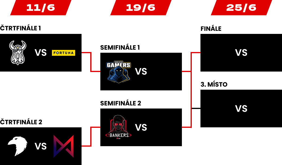 V KB Esport lize firem je rozhodnuto o šesti postupujících do playoff o 25 000 Kč. Po pěti kolech skončila základní část, ze které postupují BANKERS, FLY5 Esports, Moneta Esports, Oddin.gg, Konecta Gamers a Fortuna.